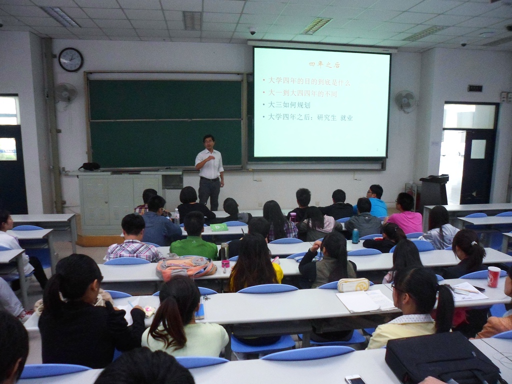 【本站讯 孙乃麟】9月27日下午,我院通信工程专业2011级召开专业报告会,通信工程系主任李世宝副教授针对大三过程中同学们可能遇到的问题,为学生答疑解惑。