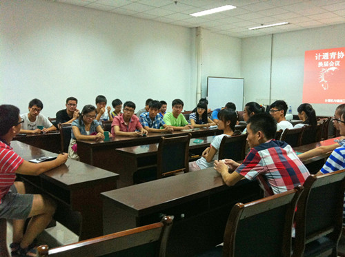 【本站讯 杜艺颖】时光荏苒,当初懵懂的大一学子如今即将成为学长学姐,为了更好地管理计通青协,不断扩大计通青协的影响力,激发优秀青年学生参与协会建设的热情,2013年7月22日,计通青协换届选举会议在工科B255正式召开。出席会议的有11级辅导员马少龙、12级辅导员刘博阳、青协骨干及大部分成员。