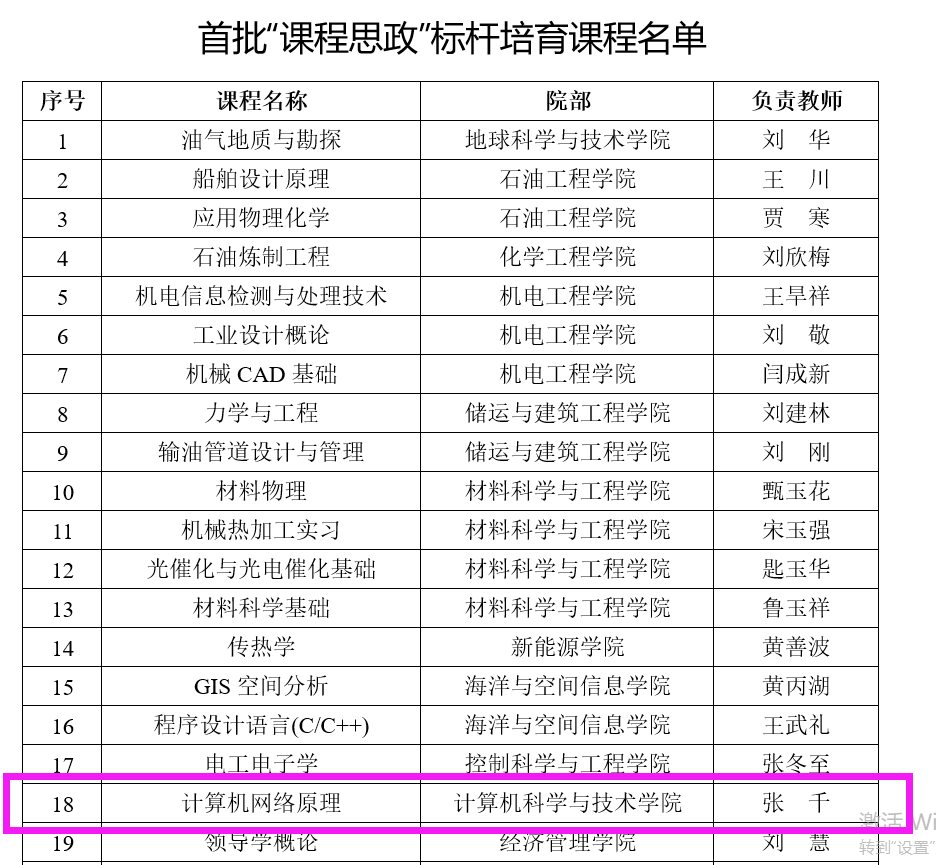 近日,教务处公布了学校首批“课程思政”标杆培育课程名单,计算机科学系张千副教授负责的《计算机网络原理》课程入选。