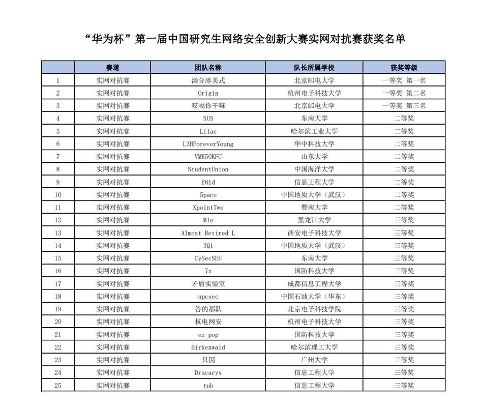 “华为杯”第一届中国研究生网络安全创新大赛决赛于20221127日在北京邮电大学落下帷幕,本次大赛由教育部学位管理与研究生教育司和中央网信办网络安全协调局联合指导,中国学位与研究生教育学会和中国科协青少年科技中心共同主办,北京邮电大学承办,旨在推动网络空间安全领域人才培养、技术创新和产业发展,助力网络强国建设。