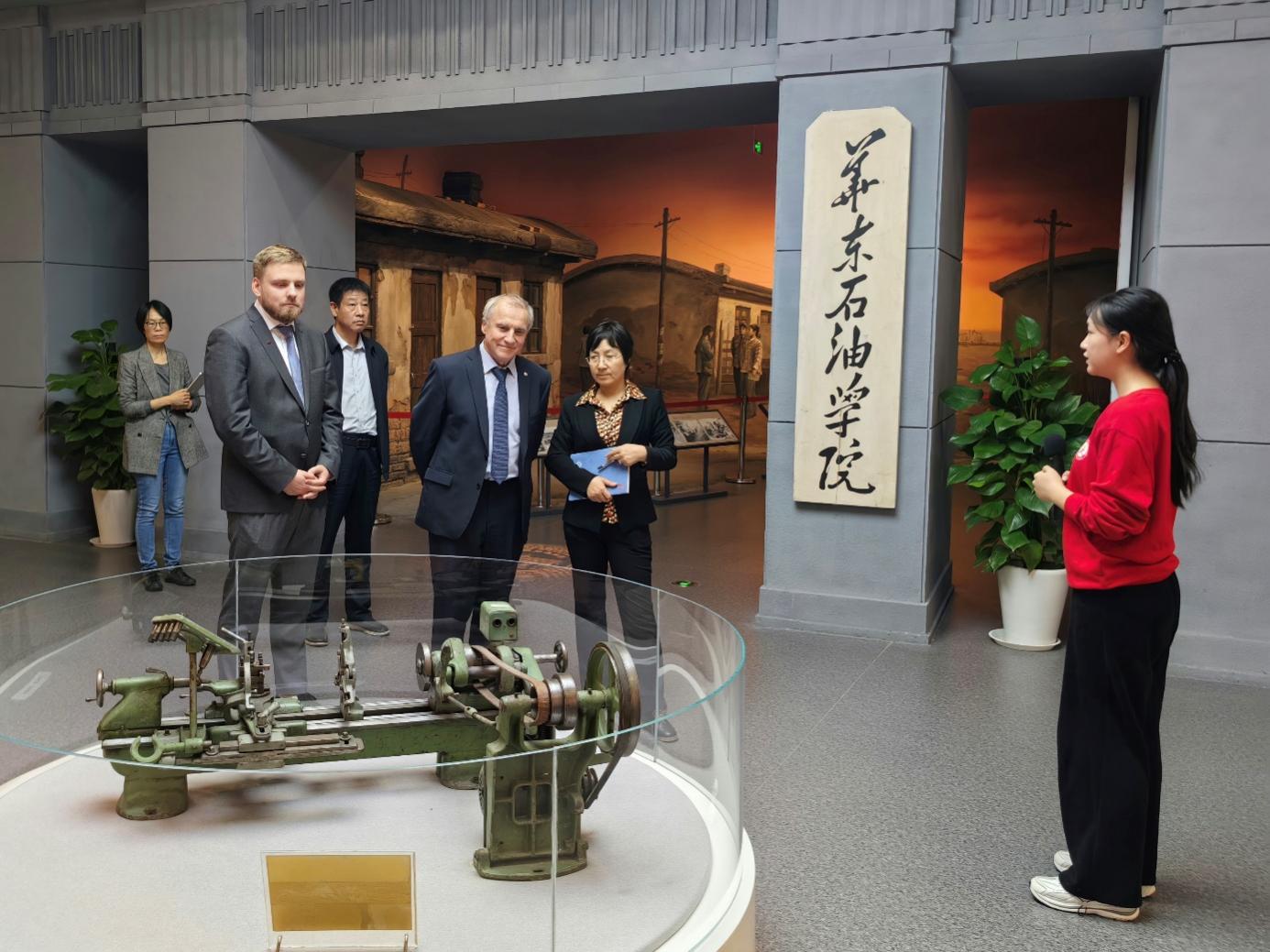 会后,在宫法明的陪同下,斯马金团队还参观了学校校史馆,了解了我们学校的发展历史及在石油工业与石油高等教育做出的突出贡献。