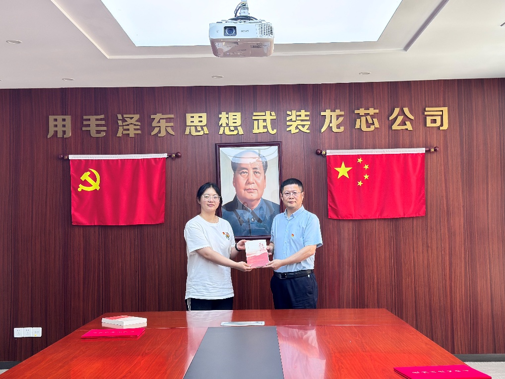签约仪式后,吴少刚向工业物联网党支部、软件2406团支部赠送企业发展纪实书籍《龙芯的足迹2001-2023》。该书全面记录了龙芯二十余年自主创新、自力更生的发展历程,展现了我国通用处理器领域从“跟跑”到“领跑”的奋进之路。