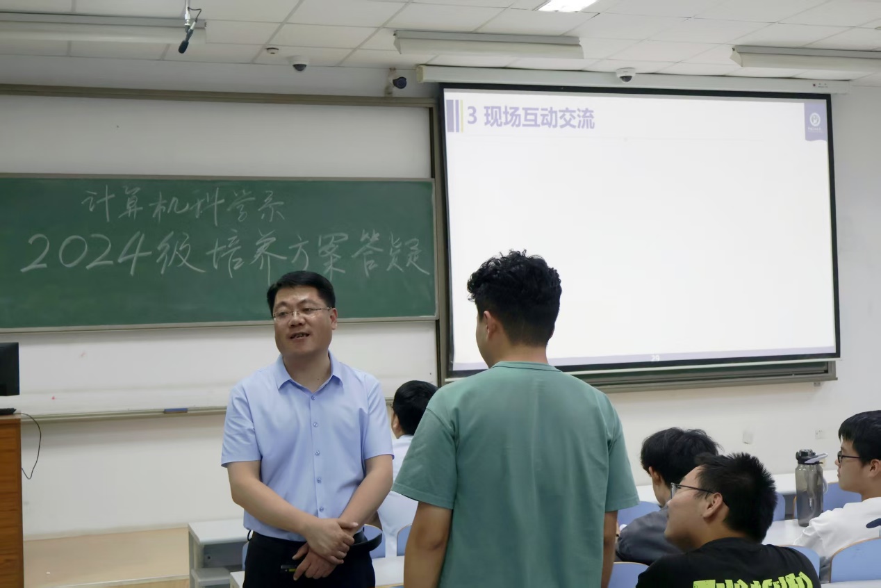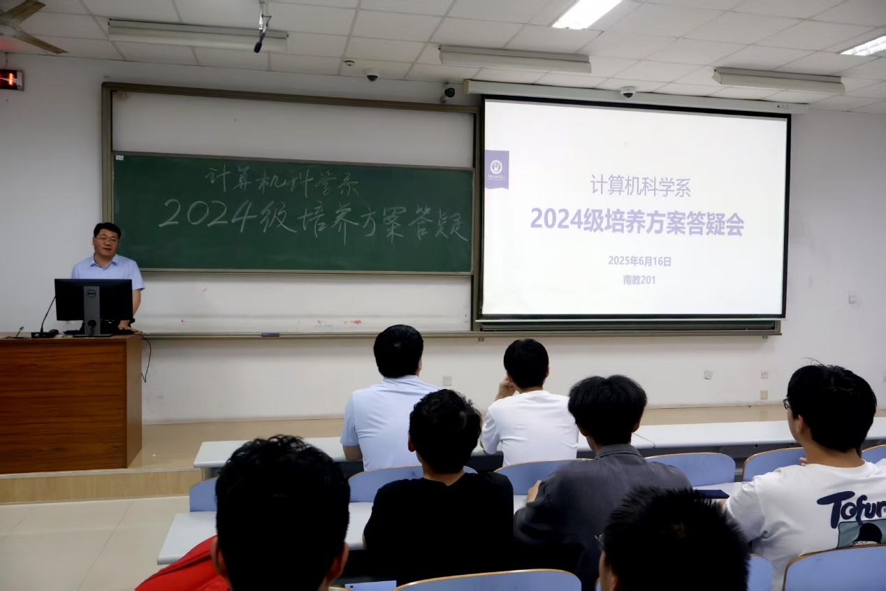 为助力2024级计算机科学与技术专业学生及转专业同学明晰大二选课方向,科学规划学业与职业发展路径,6月16日,计算机科学系在南教201成功举办2024级培养方案答疑会。会议围绕软件架构、网络规划、嵌入式开发、智能应用四大课程方向展开深度解读,并就选课规则、方向适配性等问题进行集中解答。系主任王大鹏、支部书记孙运雷、教学主任张琛及计算机科学与技术专业全体同学、15名转专业同学参会,计算2403班张淇贺主持会议。