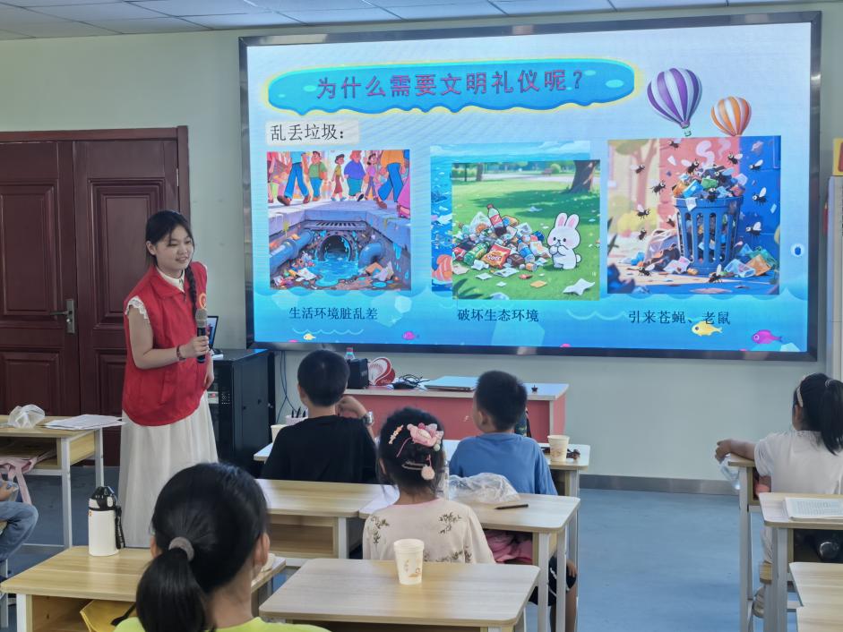 在“文明小达人——从我做起,做最棒的小学生”一课上,主讲人马金悦围绕“什么是文明?”“为什么需要文明礼仪”“什么是不文明行为”“怎样做文明小达人”四个方面,引导孩子们深入思考文明行为的意义。课堂采用视频互动、提问交流、看图识别不文明行为等形式,调动孩子们的参与积极性,使教学过程充满趣味性与教育性。在看图看视频识别不文明行为的环节中,孩子们争先恐后地指出乱扔垃圾、不礼貌用语、大吵大闹等不文明行为,表现出极高的观察力和判断力;课堂氛围热烈,掌声与笑声交织,孩子们潜移默化地在潜移默化中增强了文明意识。