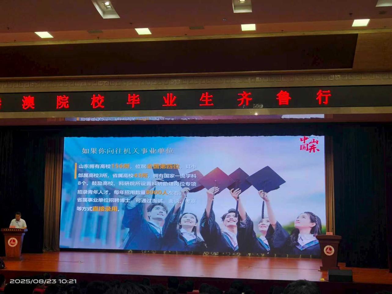 823日,由省委统战部主办的“港澳院校毕业生齐鲁行”活动在山东省社会主义学院举办。135位港澳博士生、博士后参加活动。