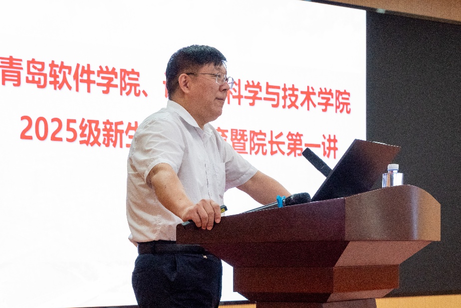 庞善臣以“立足新的起点 迈上新的征程 开创新的辉煌”为主题,围绕学校七十余载办学历程,讲述了以"家国同心的担当精神、艰苦奋斗的无畏精神、惟真惟实的治学精神、追求卓越的进取精神"为核心的石大精神,向新生阐释了学院办学理念与发展策略,学院自获批国家特色化示范性软件学院以来,始终面向国家战略需求,聚焦关键软件技术攻关与高端人才培养,承担多项国家级重点研发计划,为国家产业转型提供了关键核心技术支撑。