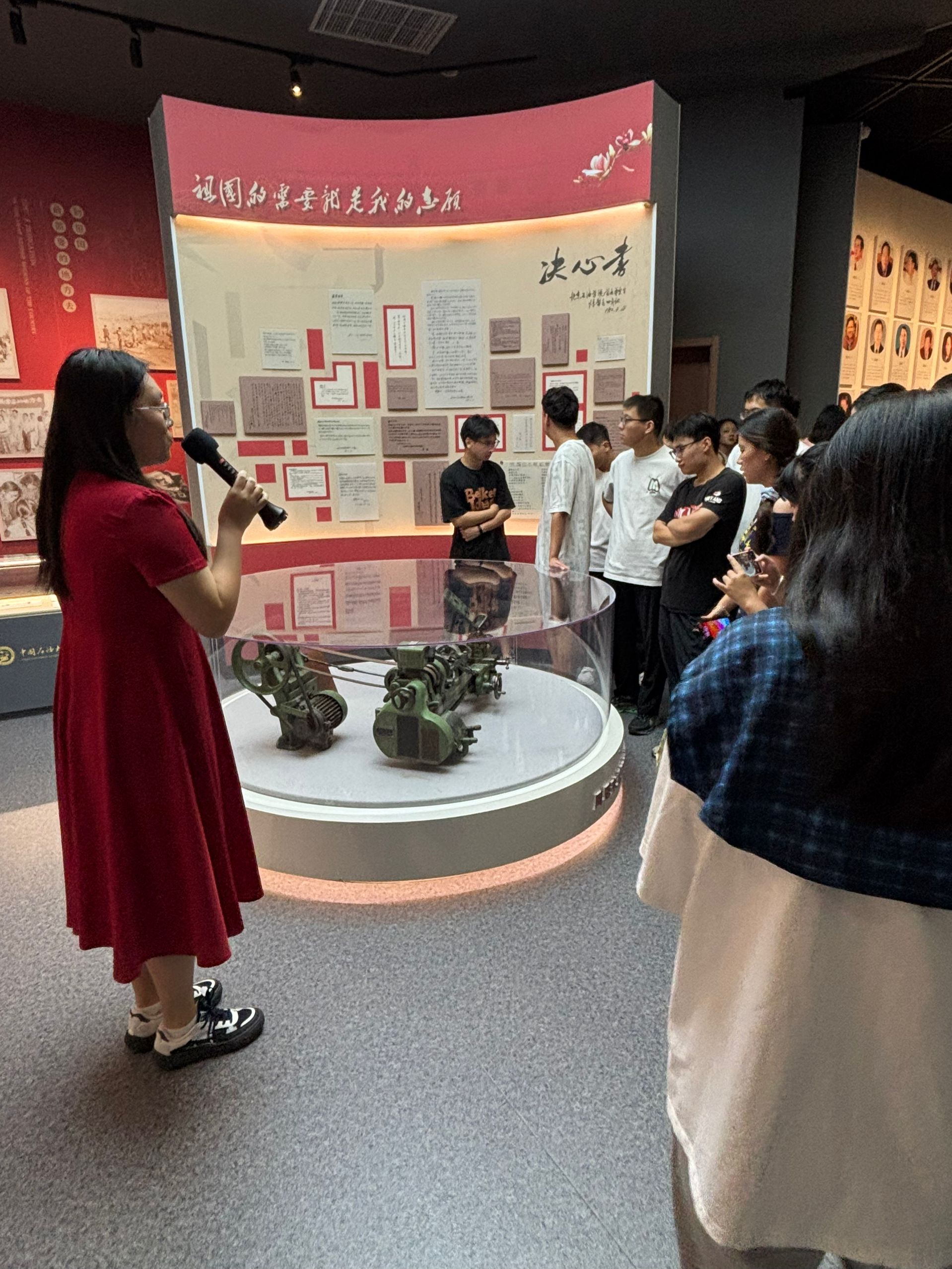 作为入学教育的 “文化开篇”,学院组织 2025 级研究生新生于 9 月 1 日起分批前往校史馆参观,由曹双负责统筹安排。在讲解员的引导下,新生们沿着校史脉络,依次了解学校在学科建设、师资培育、科研突破、社会服务等方面的发展历程 —— 从建校初期的办学初心,到如今在能源行业软件研发、人工智能与大数据等领域的特色成果,每一段历史、每一项成就都让新生们驻足聆听。