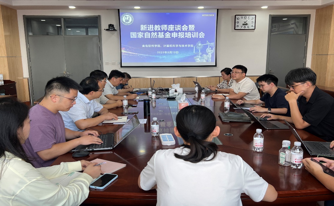 9月10日,学院组织召开新进教师座谈会暨国家自然科学基金申报培训会。学院党委书记吴春雷、青岛软件学院建设办公室主任兼副院长刘培勇及新进教师代表参加会议,会议邀请2025年获得国家自然科学基金面上项目资助的齐连永教授和王爽副教授做经验分享,刘培勇主持会议。